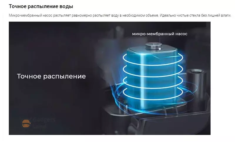 Своевременное и точное разбрызгивание обеспечивает встроенная в Hutt C6 новый, современный мембранный насос, а также сопло идеальной формы, полученное после сотен экспериментов. С ним вода разбрызгивается под верным углом, а само сопло служит долго даже если вода, которую заливают в робот, является жесткой. Сопло в Hutt C6 сделали съемным. На случай, когда все-таки придет время заменить его, с Hutt C6 поставляются четыре дополнительных экземпляра сопел.